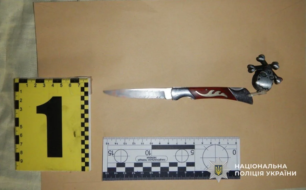 Правоохоронці провели огляд місця події, під час якого вилучили речовий доказ — ніж зі слідами крові.
