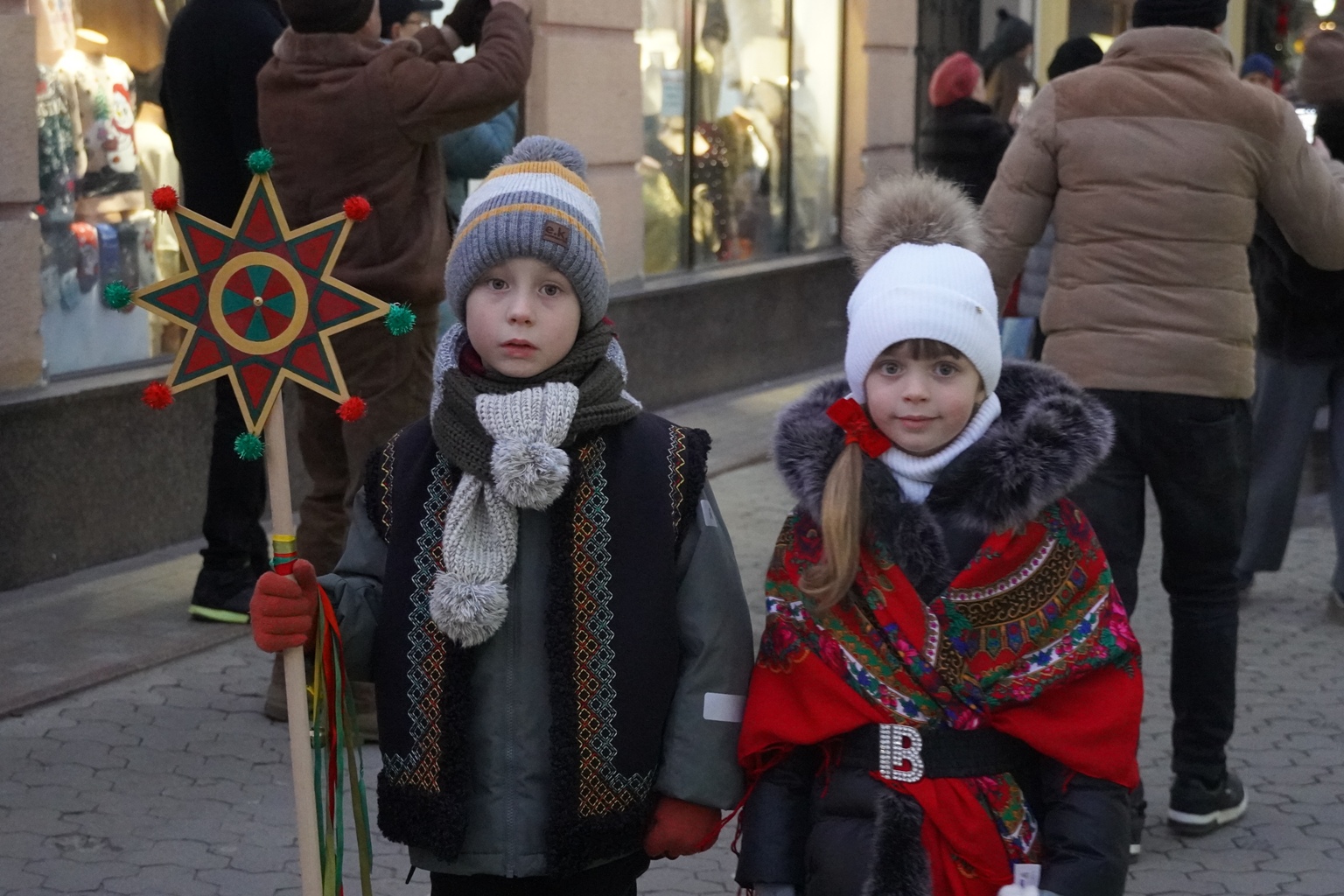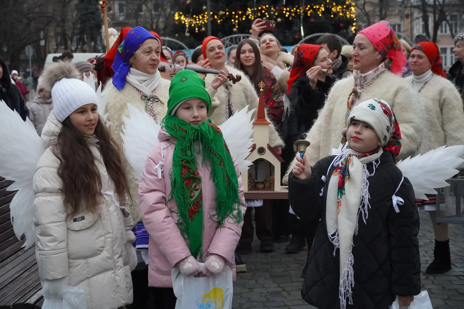 На площі Театральній лунали традиційні колядки, різдвяні віншування та спільні піснеспіви, які створили теплу та піднесену атмосферу святкового міста.