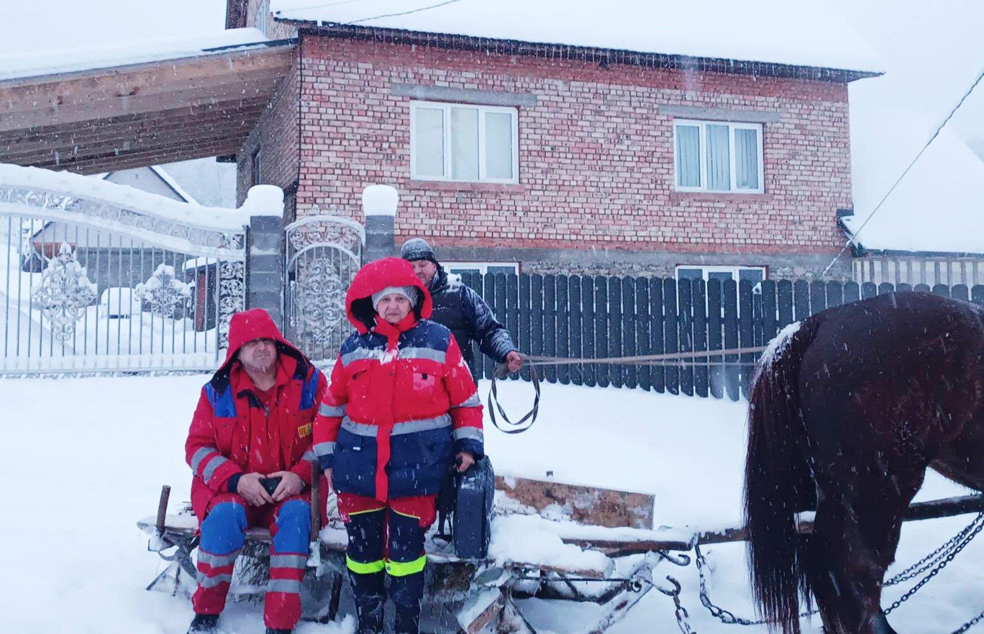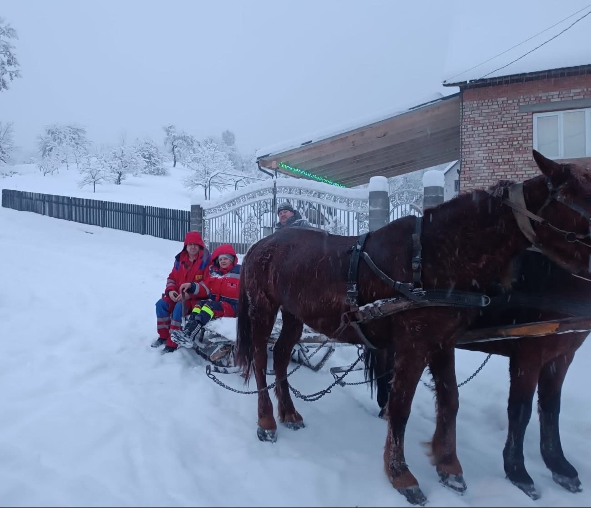 Бригада «швидкої» подолала 11 кілометрів засніженої дороги, проте останні 2 км були непрохідними для авто. Однак місцевий житель помітив «швидку» і запропонував допомогу. Його пара коней на санях доставили лікарів до оселі, де чекала мама і хлопець у важкому стані.