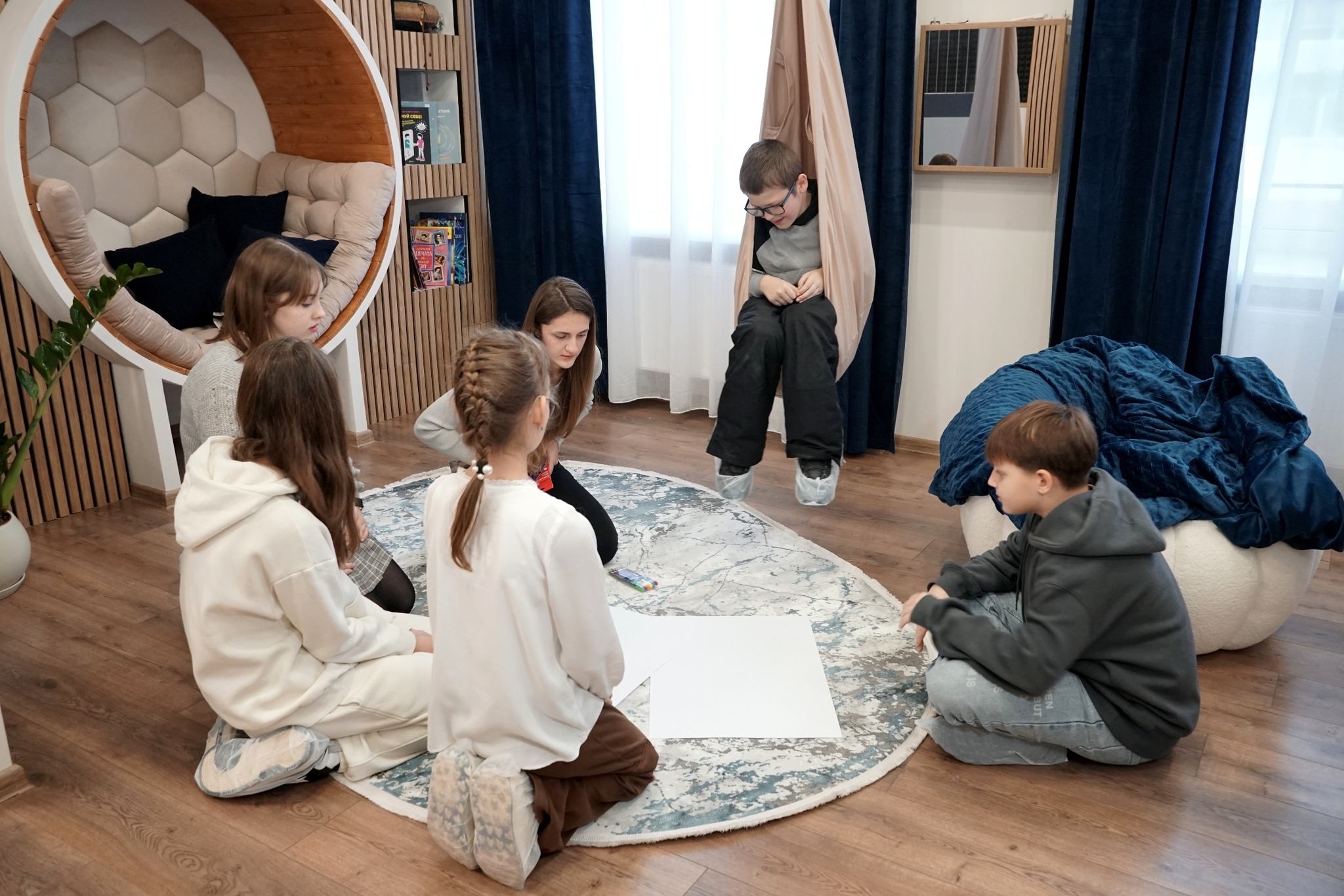 Новий простір площею 34 квадратні метри поділений на кілька зон: сенсорну, активного розвантаження, арт- і пісочної терапії та зону звукової релаксації. Тут є світлова бульбашкова панель, дзеркало з ефектом нескінченності, сенсорні панелі, музичні інструменти, електронні барабани та навіть боксерський тренажер. Усе це допомагає дітям і педагогам безпечно проживати емоції, знижувати тривожність і повертати концентрацію протягом навчального дня.