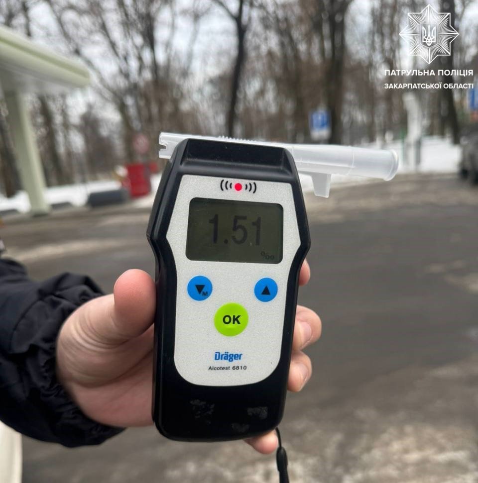 Під час спілкування поліцейські помітили у водія ознаки алкогольного сп’яніння, такі як запах алкоголю з рота, порушення координації рухів та мовлення. Водій погодився пройти огляд на місці зупинки, результат якого становив 1,51 проміле.