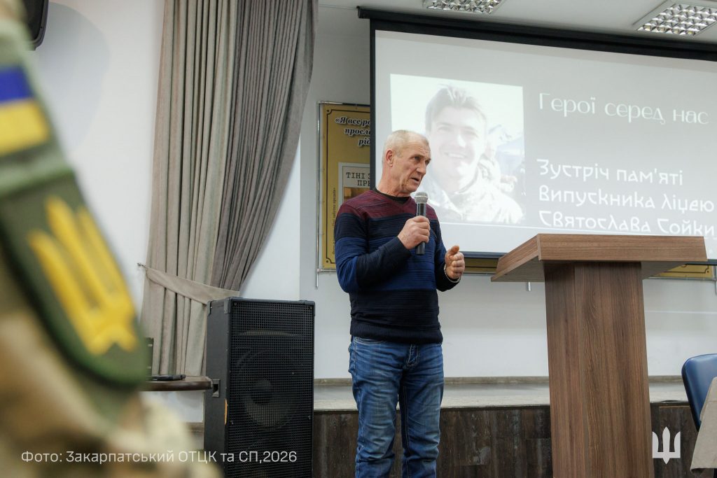 Святослав Сойко: шлях до героїзму Первинна зустріч була присвячена випускнику ліцею Святославу Сойку (позивний «Француз»). Святослав мав унікальний досвід: службу у Французькому іноземному легіоні, звання капрала, знання мов та пристрасть до альпінізму. 24 лютого 2022 року він повернувся до України та став добровольцем у складі 128-ї окремої гірсько-штурмової бригади. Загинув 24 березня 2022 року на Запорізькому напрямку. Посмертно нагороджений орденом «За мужність» III ступеня.