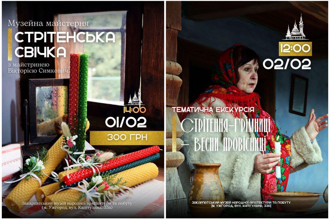 Наступної неділі, 1 лютого, працівниця музею Вікторія Симкович проводить майстер-клас з виготовлення «Стрітенської свічки». Учасники цього творчого заняття не тільки виготовлять обрядові свічки, але й отримають глибокі знання про походження і значення цього традиційного свята. Майстер-клас доповниться спеціальною екскурсією, яка розкриє символіку стрітенської свічки як потужного охоронного атрибуту. В результаті кожного учасника очікують два унікальні вироби: класична та потрійна громнична свічка. Початок заходу о 14:00, участь можливе лише після попереднього запису.