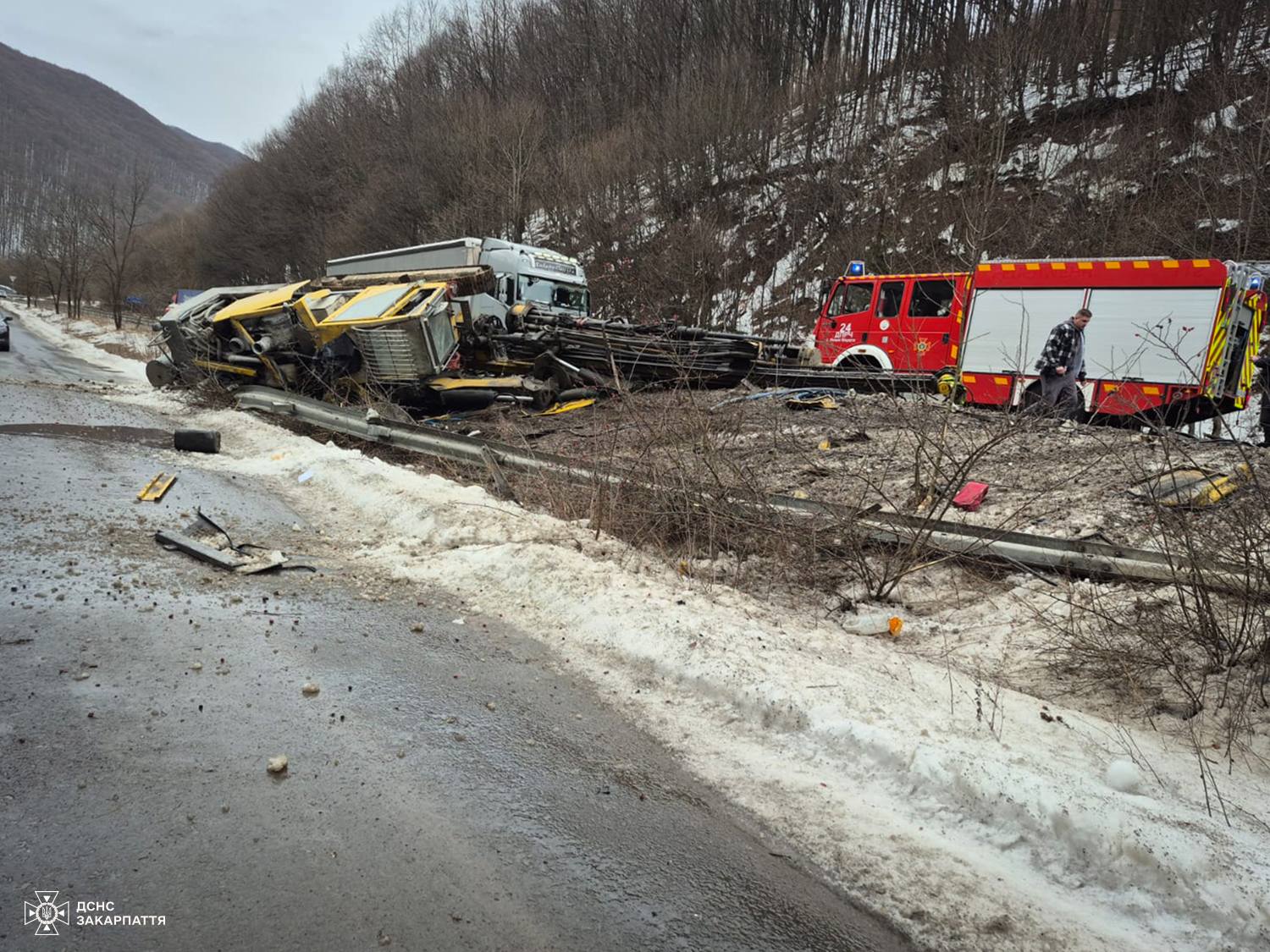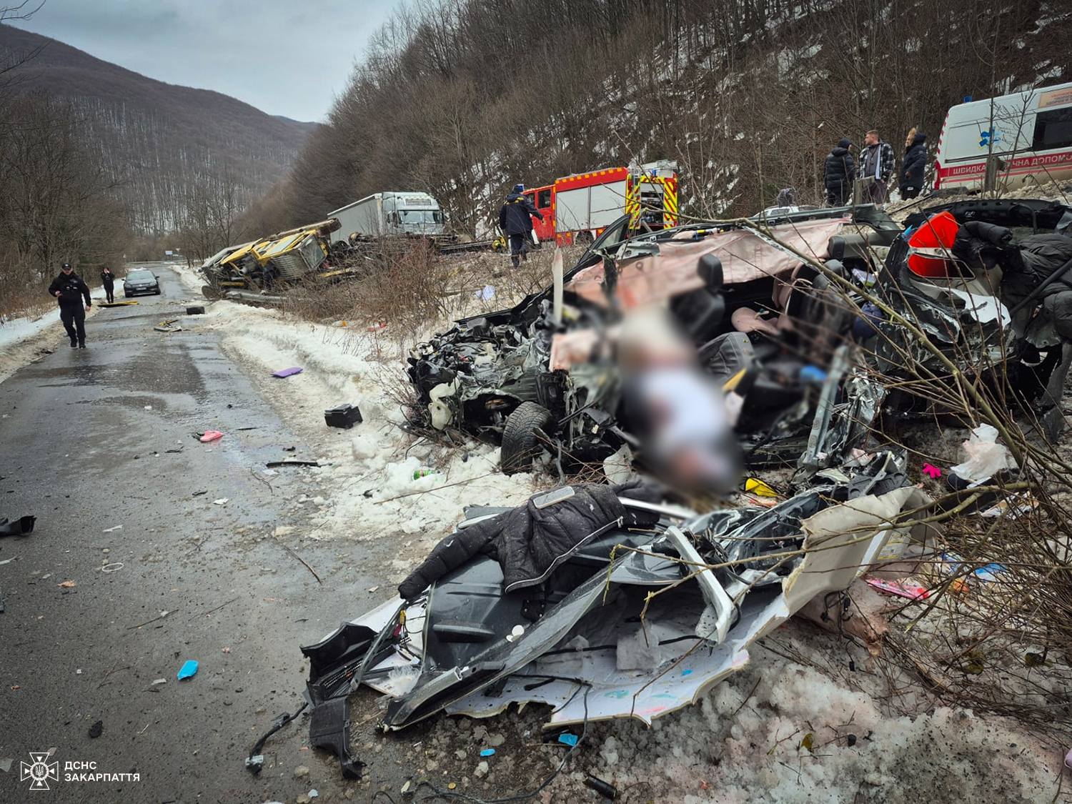 За повідомленням ДСНС України в Закарпатській області, 30 січня о 11:37 на автодорозі міжнародного значення Київ–Чоп сталася трагічна аварія. Вантажівка DAF з напівпричепом, завантаженим автомобільним краном, виїхала на смугу зустрічного руху, де сталося лобове зіткнення з легковим автомобілем GMC.