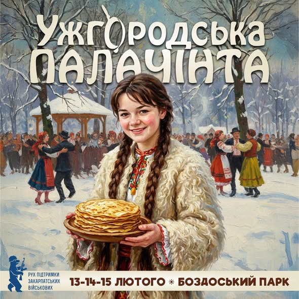 Від 13 до 15 лютого 2026 року у Боздоському парку відбується гастрономічний фестиваль «Ужгородська Палачінта», який вже вдругисте проведуть. Фестиваль стане справжнім місцем зустрічі традицій та сучасності.
