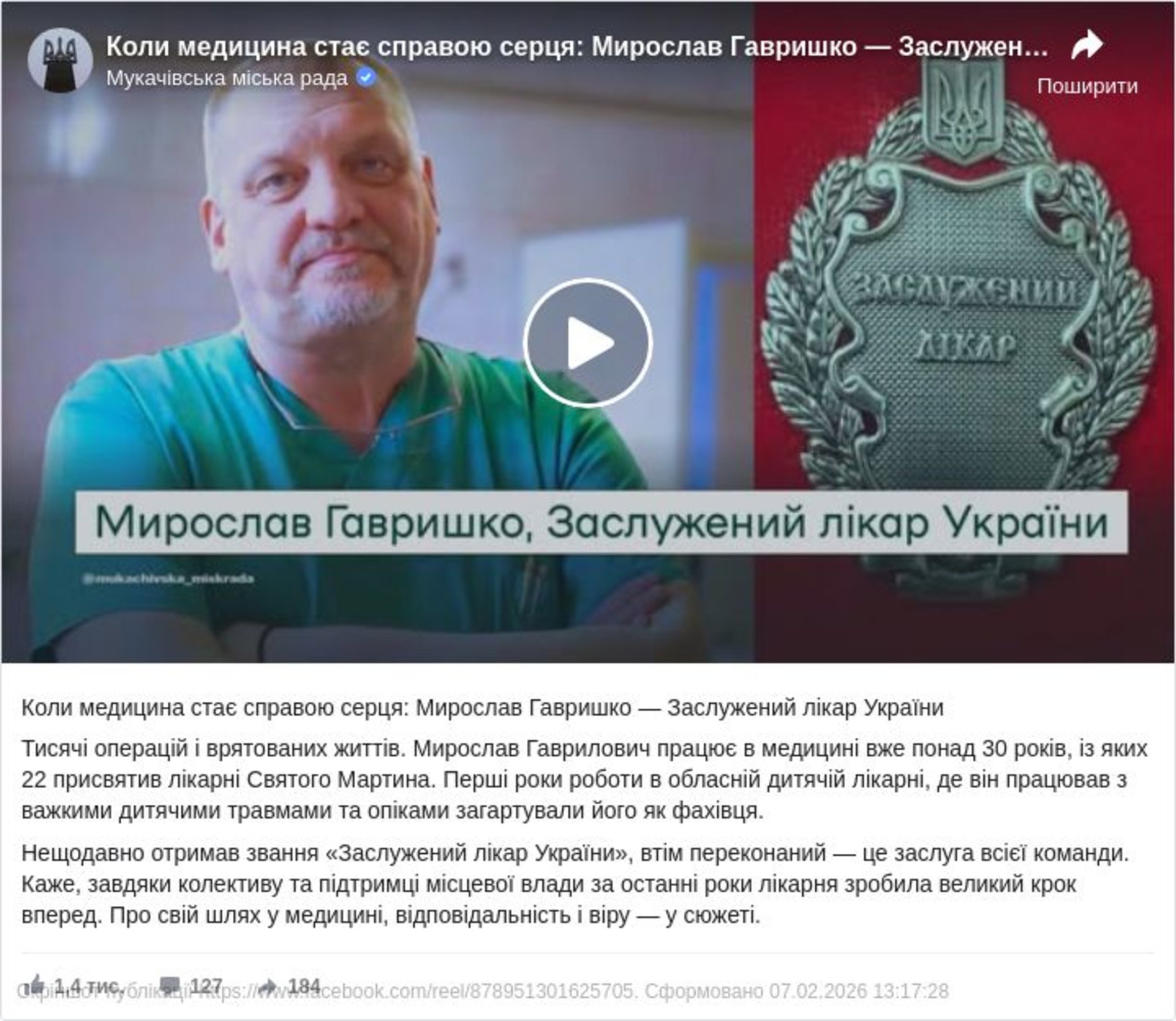 Нещодавно Мирослав Гаврилович отримав почесне звання «Заслужений лікар України», але він переконаний, що це заслуга всієї команди лікарні. Сам лікар вважає, що підтримка колективу та місцевої влади дала змогу лікарні зробити великий крок вперед за останні роки. Докладніше про свій шлях у медицині, про відповідальність і віру ми можемо дізнатися із цього сюжету.