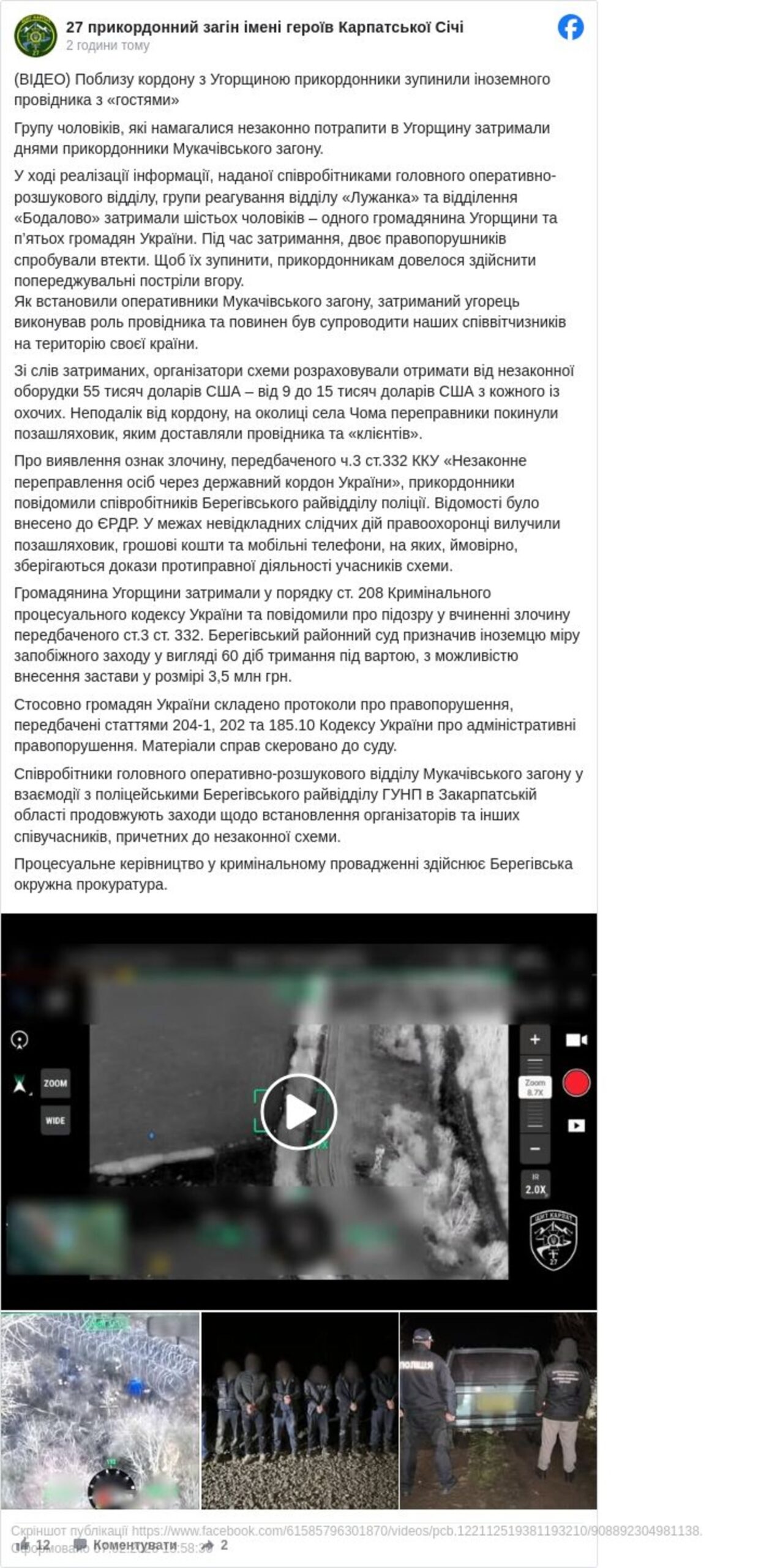 Як виявилося, угорський громадянин виконував роль провідника для українських громадян, намагаючись провести їх на територію Угорщини. Неподалік від кордону, біля села Чома, переправники залишили свій транспорт, який використовувався для доставки “клієнтів” до місця переправи.