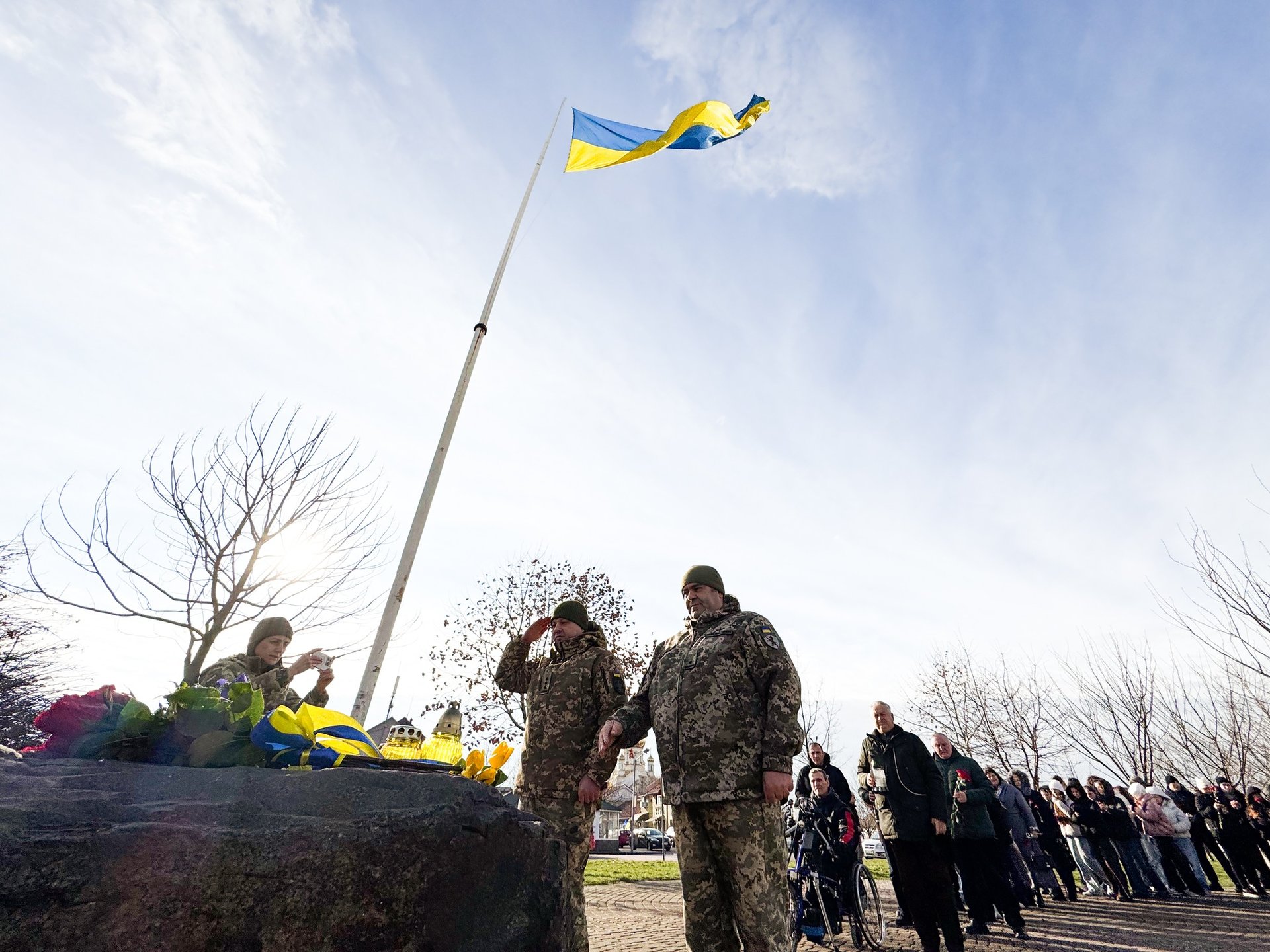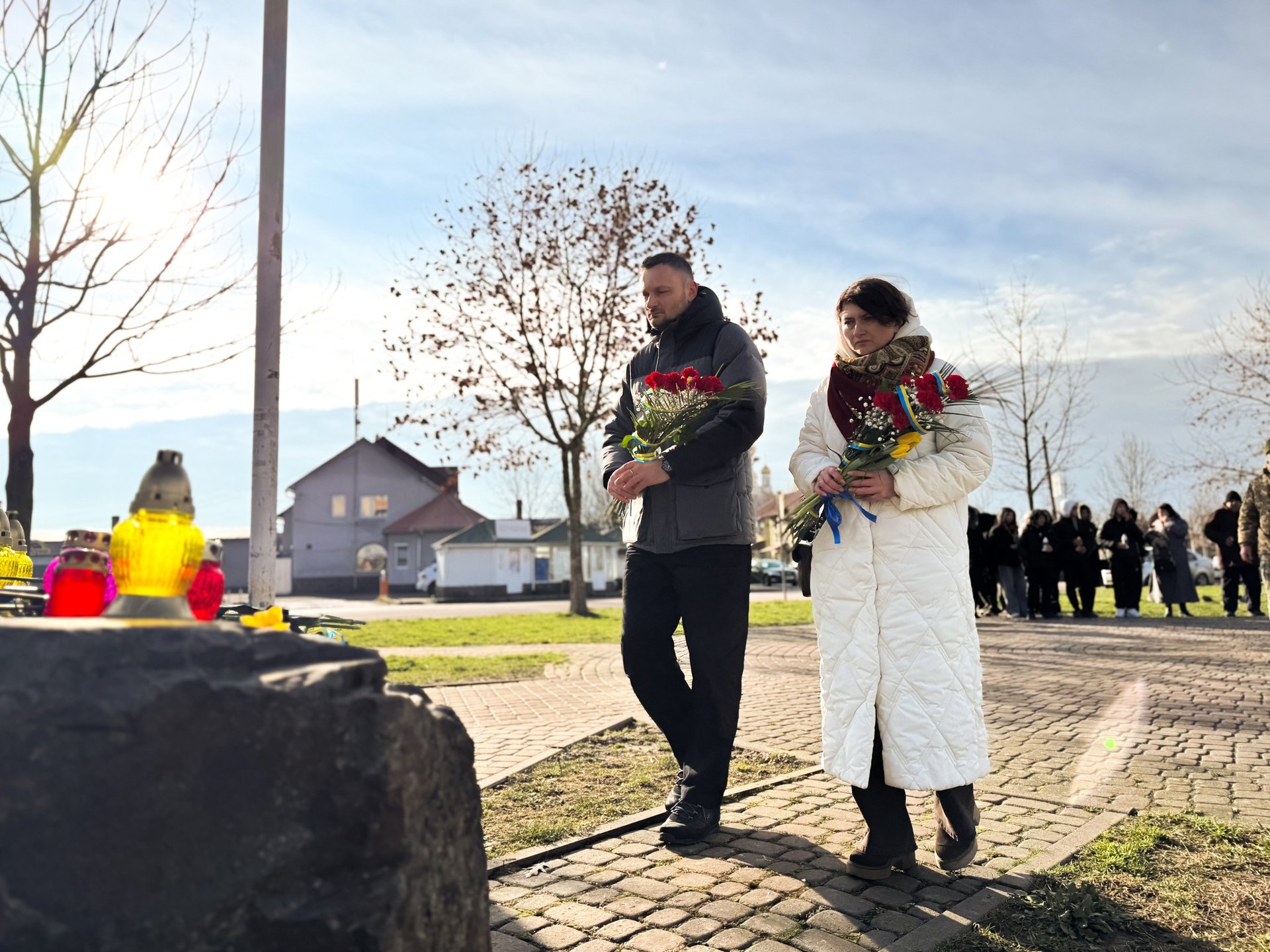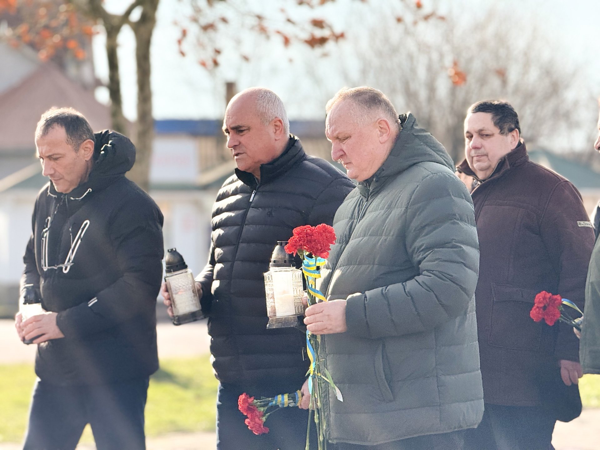З дотриманням традиції пам’яті, учасники зібрання дбайливо поклали живі квіти та запалені лампадки до підніжжя пам’ятного знаку. Цей акт шани супроводжувався зворушливою хвилиною мовчання. Кожен присутній віддав глибоку повагу тим, хто віддав своє життя за світле майбутнє України.