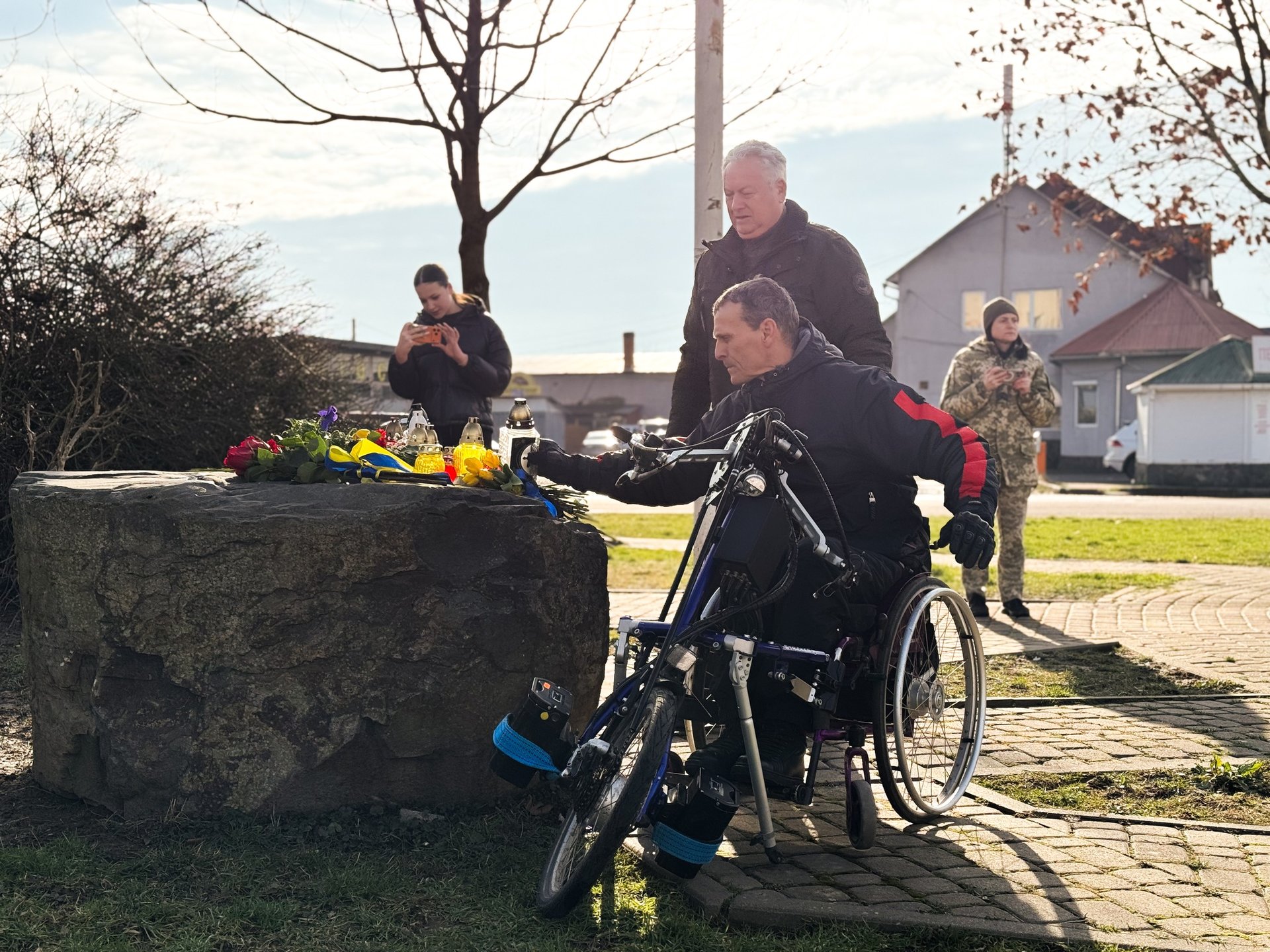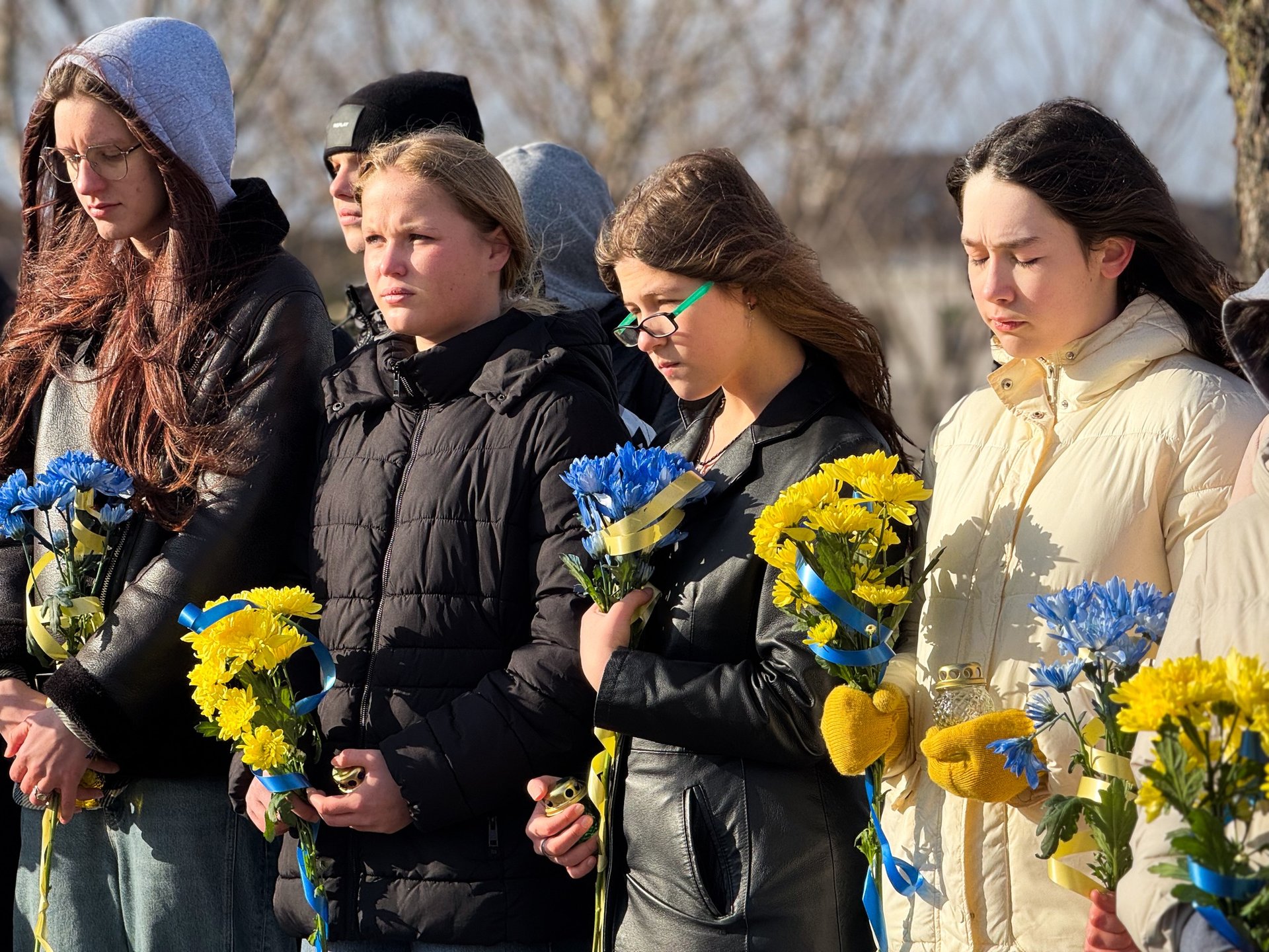 Атмосфера глибокої скорботи та об’єднання охопила всіх, коли учасники знову підійшли до пам’ятного знаку. Там вони знову поклали свіжі квіти та запалені лампадки, символізуючи вічну пам’ять. Цей момент супроводжувався тихою молитвою та єднанням у спільній жалобі за полеглими.