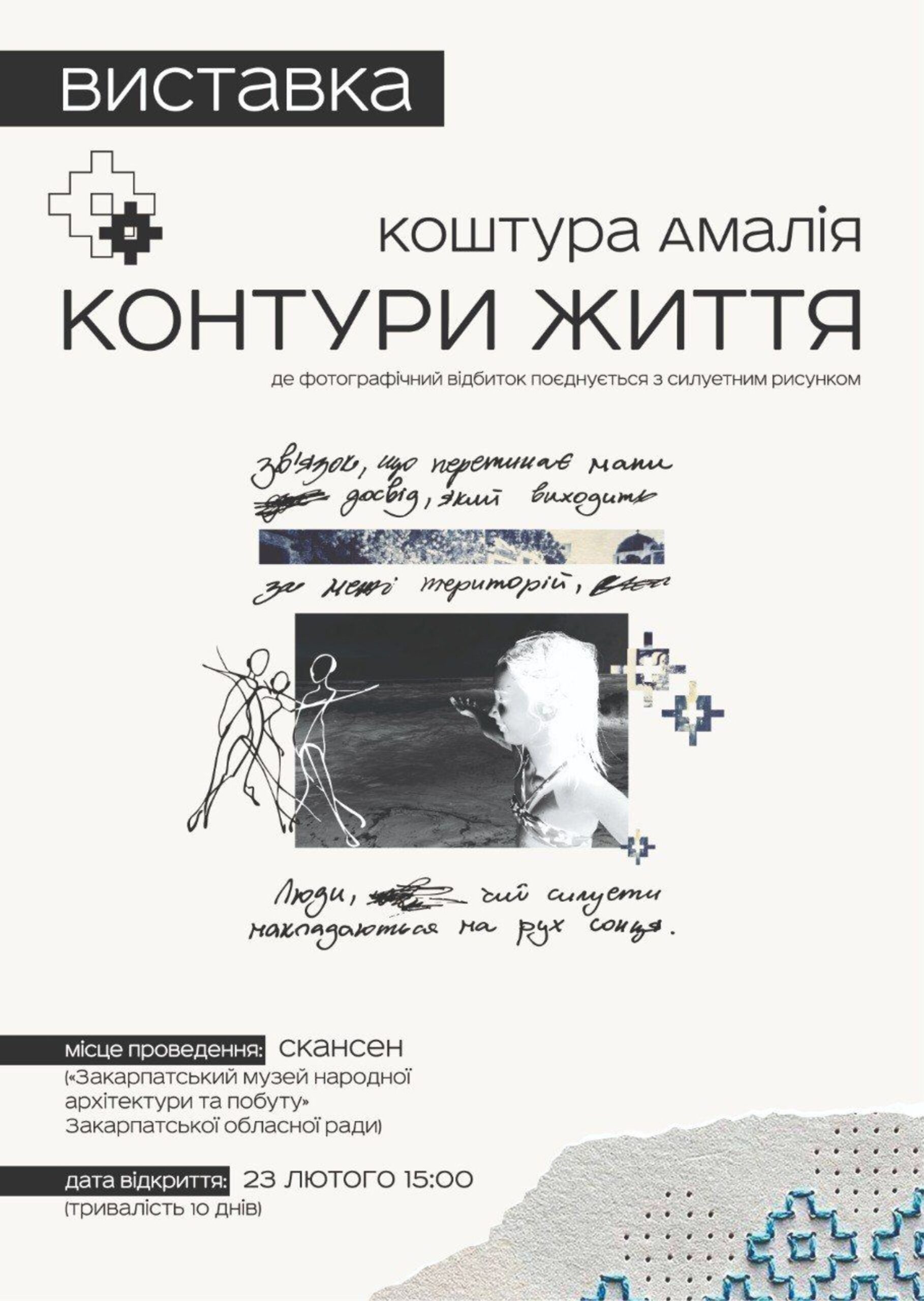 23 лютого о 15:00 у величній виставковій залі Закарпатського музею народної архітектури та побуту, що знаходиться в мальовничому Ужгороді за адресою вулиця Капітульна, 33а, відбудеться урочисте відкриття виставки талановитої мисткині Амалії Коштури під назвою «Контури життя». Ця подія стане знаковою для культурного життя міста, представляючи унікальний погляд на міський простір через призму мистецтва ціанотипії та силуетного рисунку.