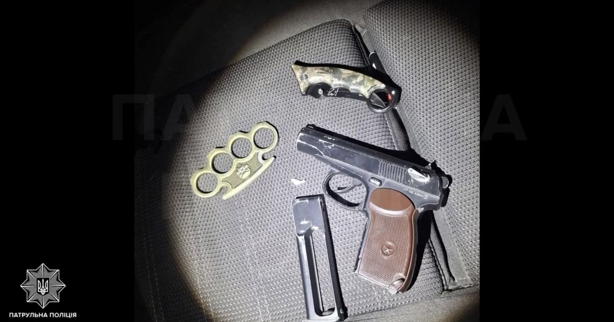 В автомобілі виявили предмет, схожий на пістолет Макарова, кастет та складаний ніж.