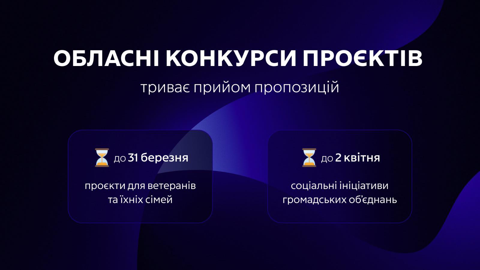Уперше в історії області проводяться два окремі конкурси для різного типу ініціатив: один для ветеранських проєктів, інший для соціальних. Такий підхід спрямований на підвищення ефективності підтримки різноманітних цільових груп.