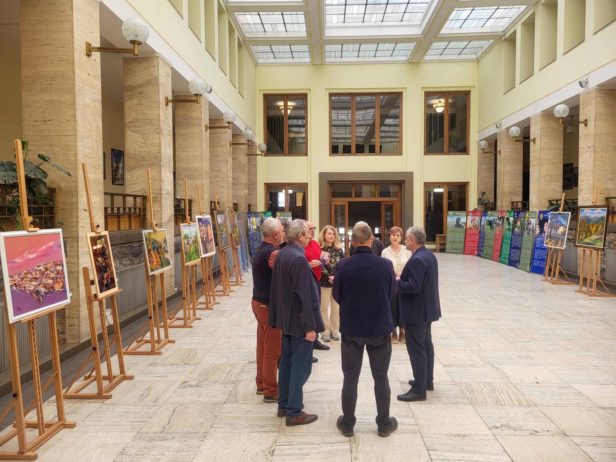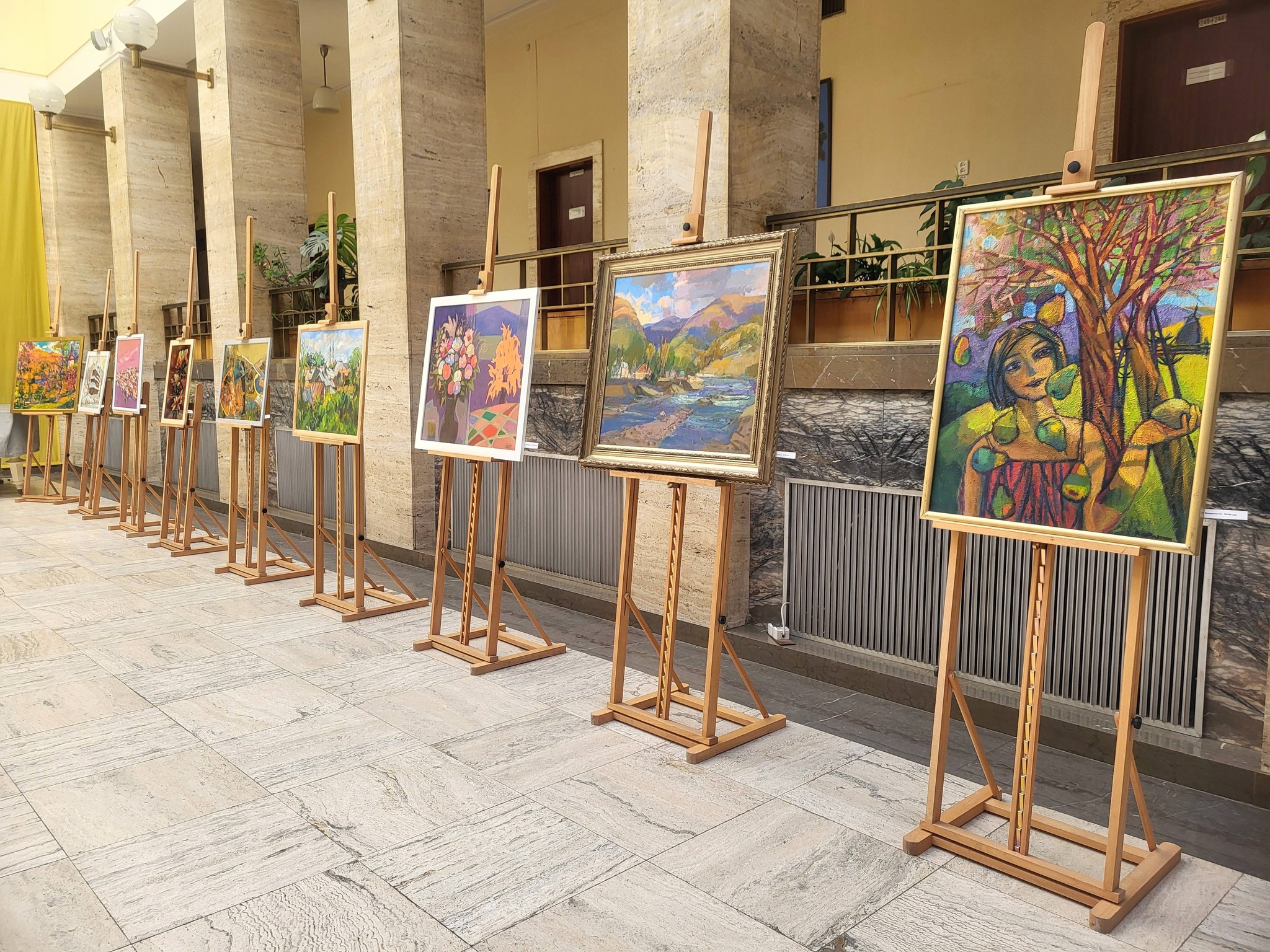 В головній адмінбудівлі Закарпатської області відбулося відкриття благодійної виставки-продажу робіт місцевих художників, розташованої в атримі.