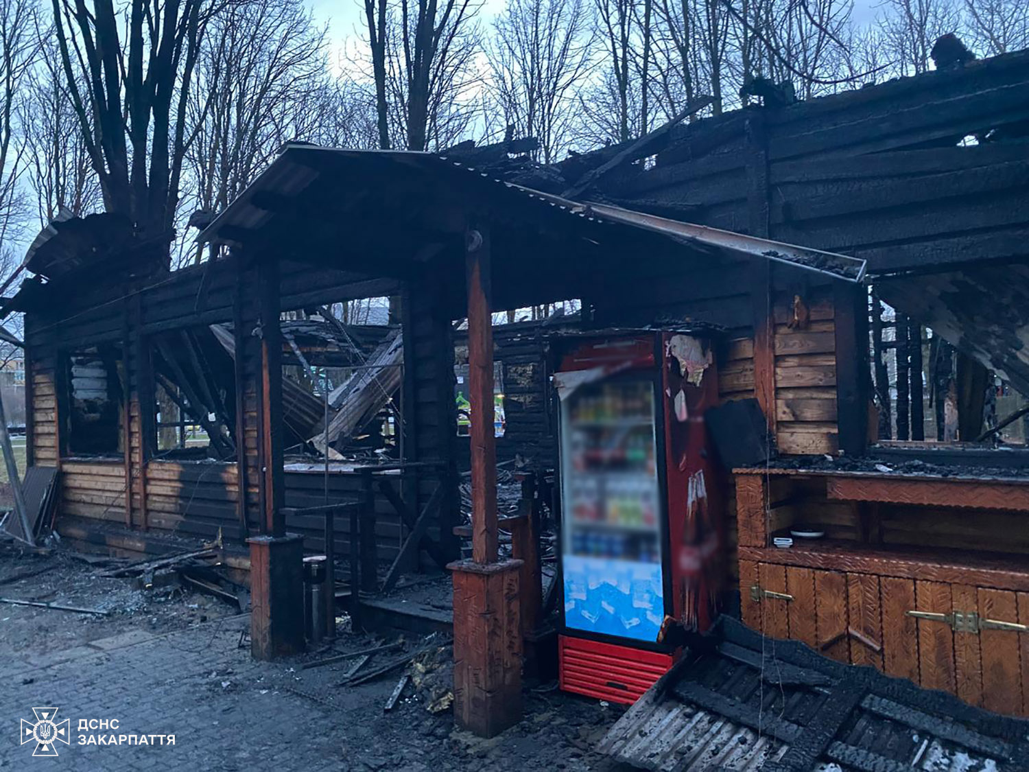 - Наслідки пожежі: Вогонь повністю знищив покрівлю, перекриття та обладнання закладу на площі 170 кв. м.