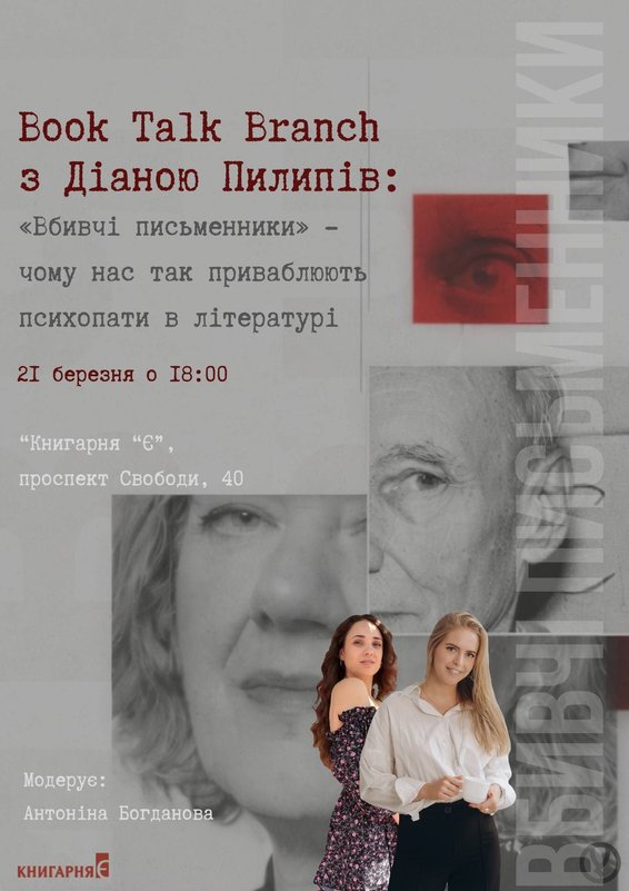 У книгарні «Книгарня Є» відбудеться зустріч, де учасники зможуть обговорити темну сторону літератури на прикладі книги «Вбивчі письменники».