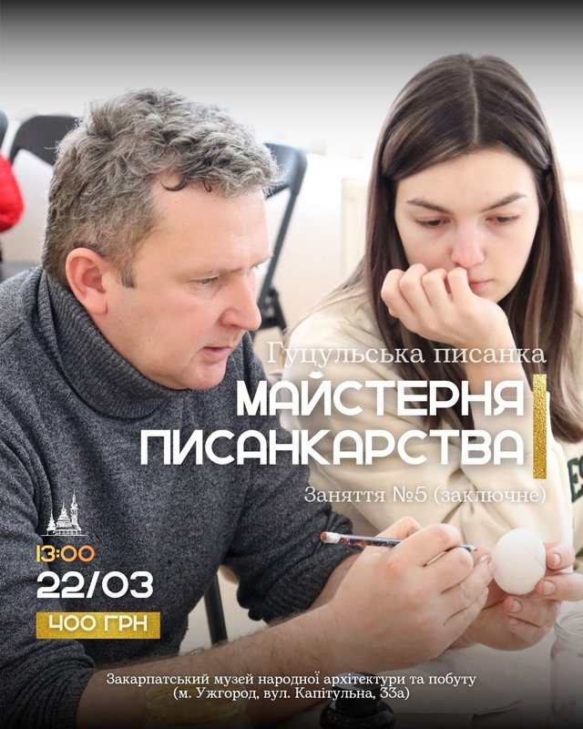 У Закарпатському музеї народної архітектури та побуту відбудеться заключне заняття в Майстерні писанкарства.