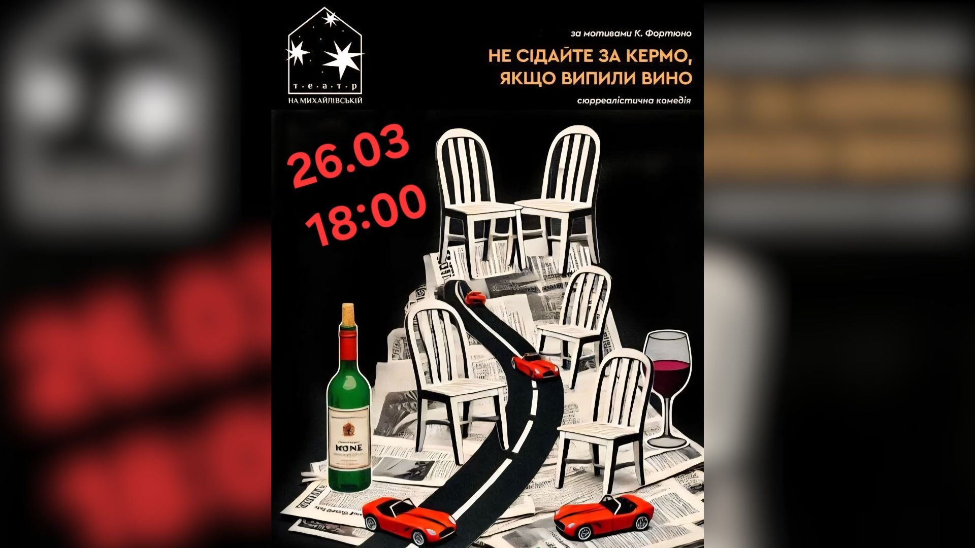 Сьогодні на сцені Мукачівського драматичного театру відбудеться показ вистави «Не сідайте за кермо, якщо випили вино» Київського «Театру на Михайлівській».