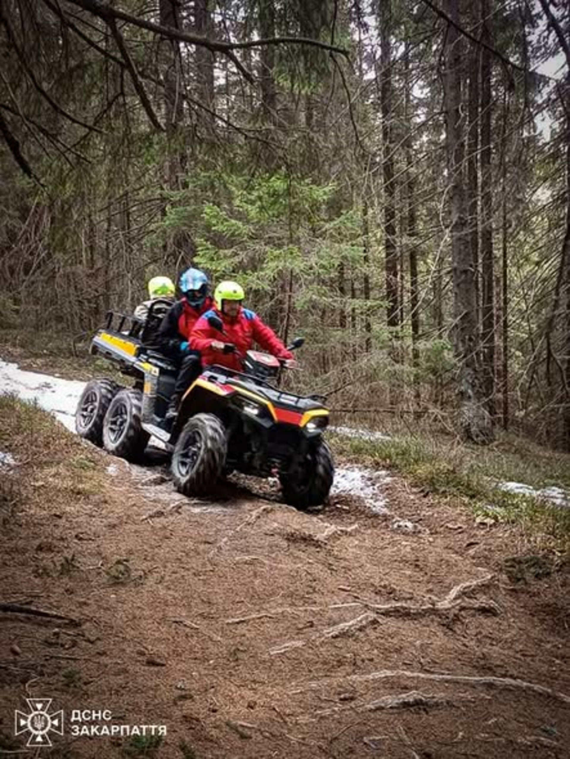 Гірські пошуковці Лазещини оперативно виїхали на виклик і за допомогою квадроцикла забезпечили безпечну евакуацію туриста до села.