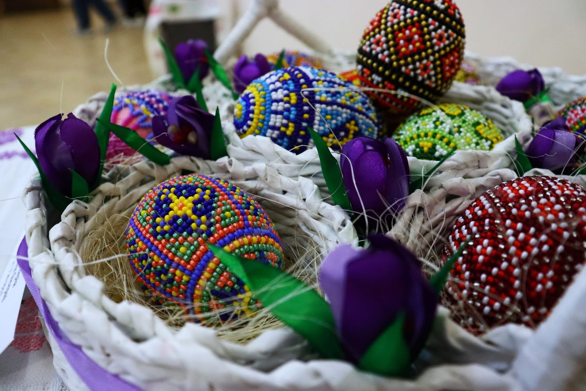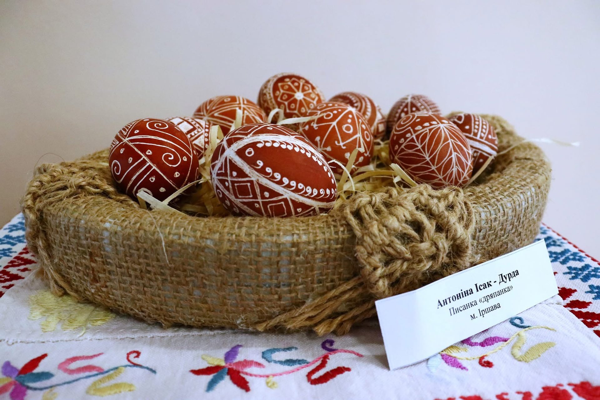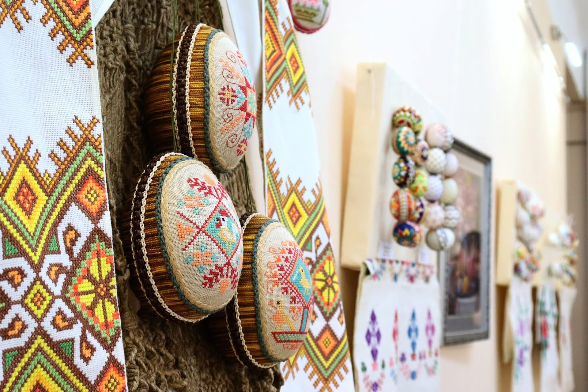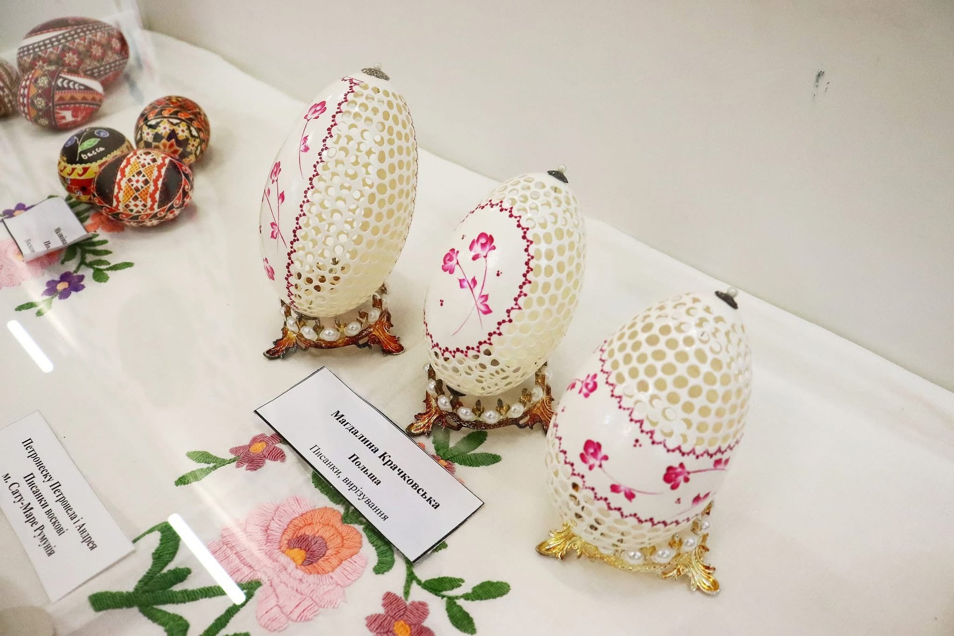 На виставці представлені роботи майстрів із України та світу, які демонструють мистецтво писанкарства в усіх його формах.
