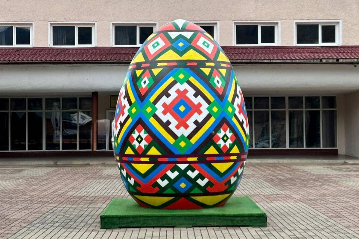 На центральній площі Рахова перед міським будинком культури з’явилася велетенська писанка, символізуючи відродження, життя та культурну спадщину громади перед святом Великодня.