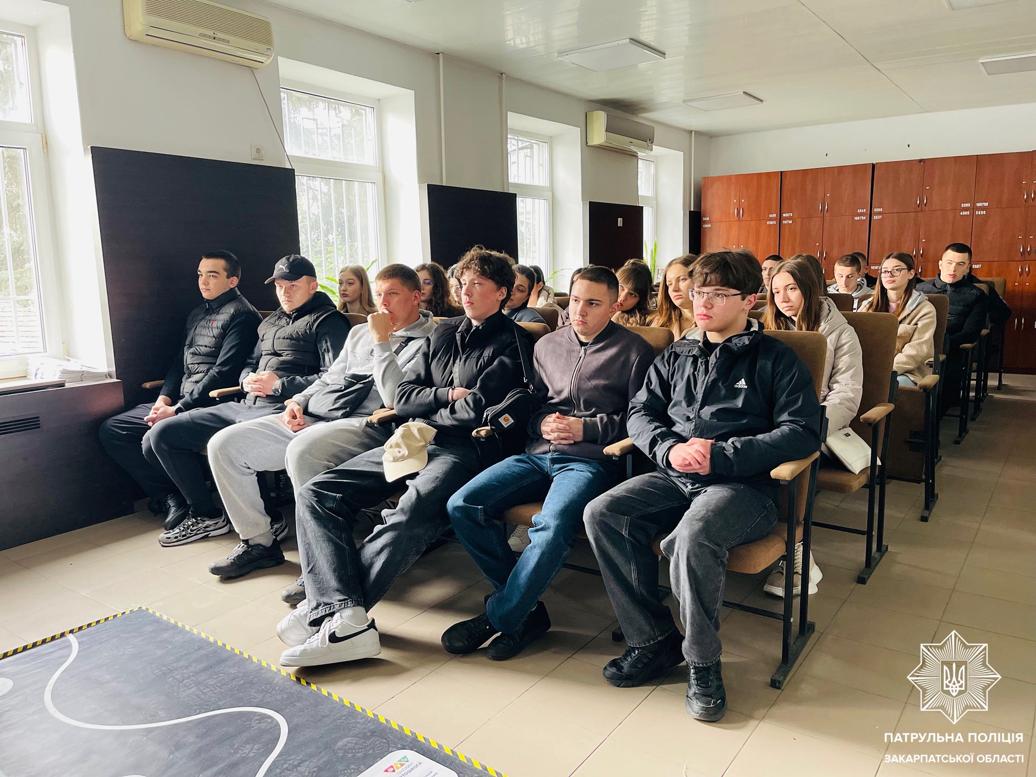Інспектори служби розповіли студентам про основні задачі патрульної поліції, щоденні виклики та ситуації, з якими стикаються правоохоронці під час виконання службових обов’язків. Окрему увагу було приділено важливості дотримання законодавства та правил безпеки у повсякденному житті.