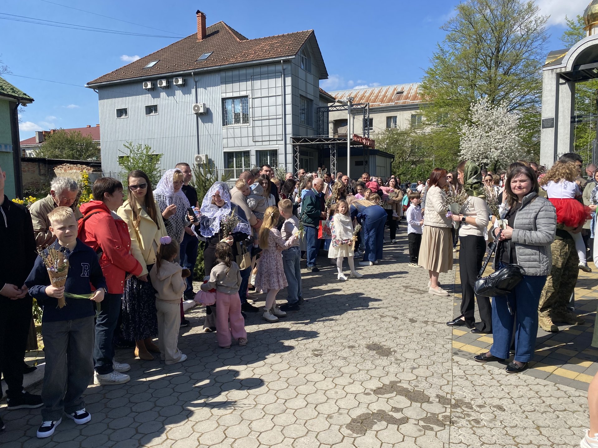 Віряни Мукачева прийшли до храмів, щоб взяти участь у святому богослужінні та освятити свої вербові гілочки. Серед учасників були представники різних вікових груп, які прийшли, щоб віддати данину святому дню.