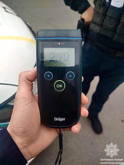 Прилад, який використовували поліцейські для перевірки рівня алкоголю в крові, зафіксував 2,79 ‰ алкоголю, що майже у 14 разів перевищує законну норму.