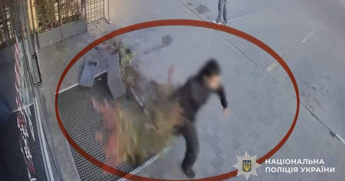 Згідно з отриманими даними, камери відеоспостереження зафіксували чоловіка, який завдав удару по дверях закладу, знищив вазони з квітами та дозволив собі нецензурні висловлювання.