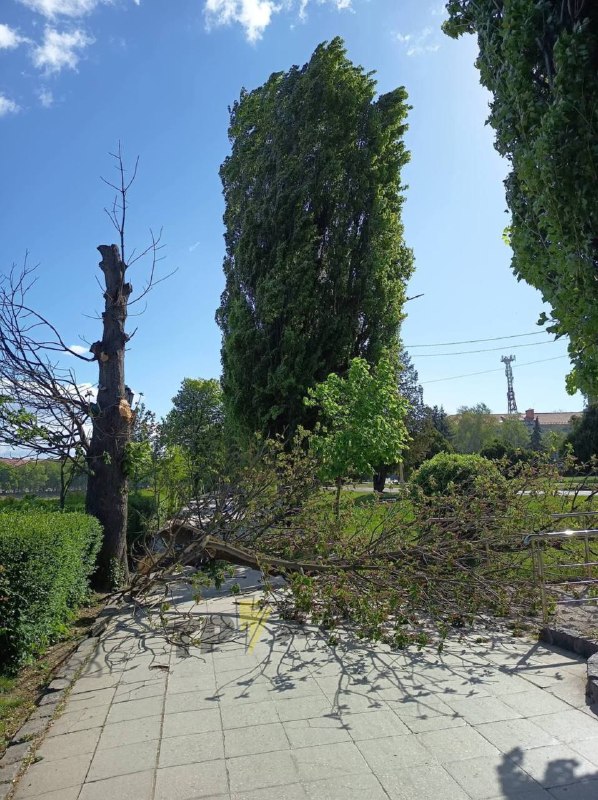 Сильна негода продовжує впливати на регіони України. Внаслідок негоди на одній з набережних були повалені дерева, що призвело до ускладнення руху для пішоходів та транспорту.