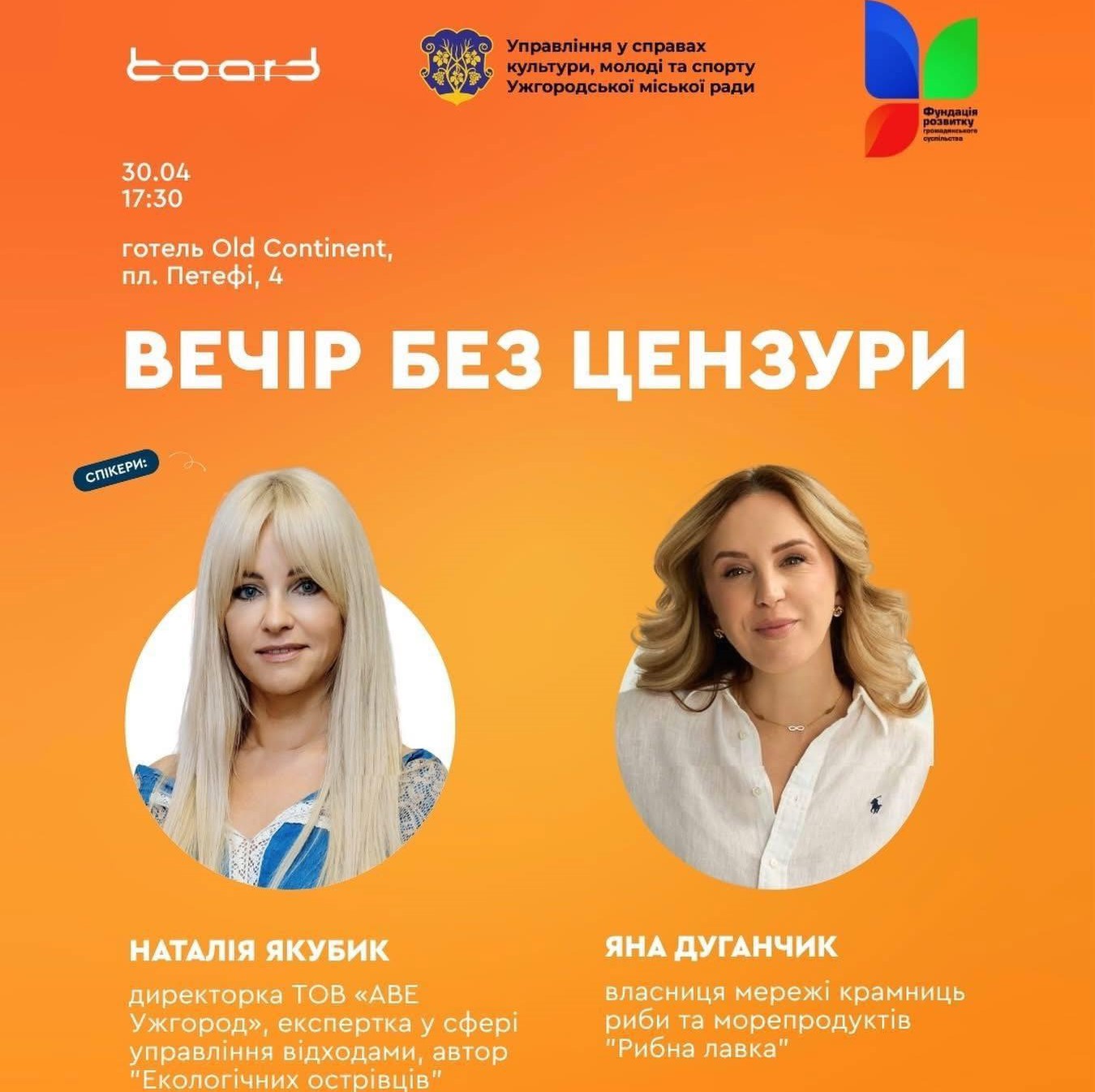 У четвер, 30 квітня, молодь та активну громаду Ужгорода запрошують на непересічну подію — «Вечір без цензури», який стане платформою для відвертих розповідей про підприємницький шлях.