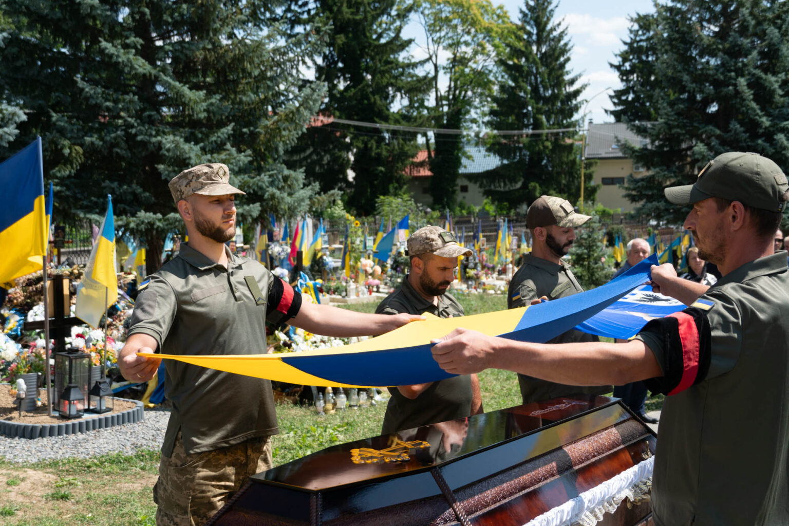 Після заупокійної літургії жалобна хода пройшла до Пагорба Слави. Там Олександра Петровича Безегу поховали із військовими почестями.
