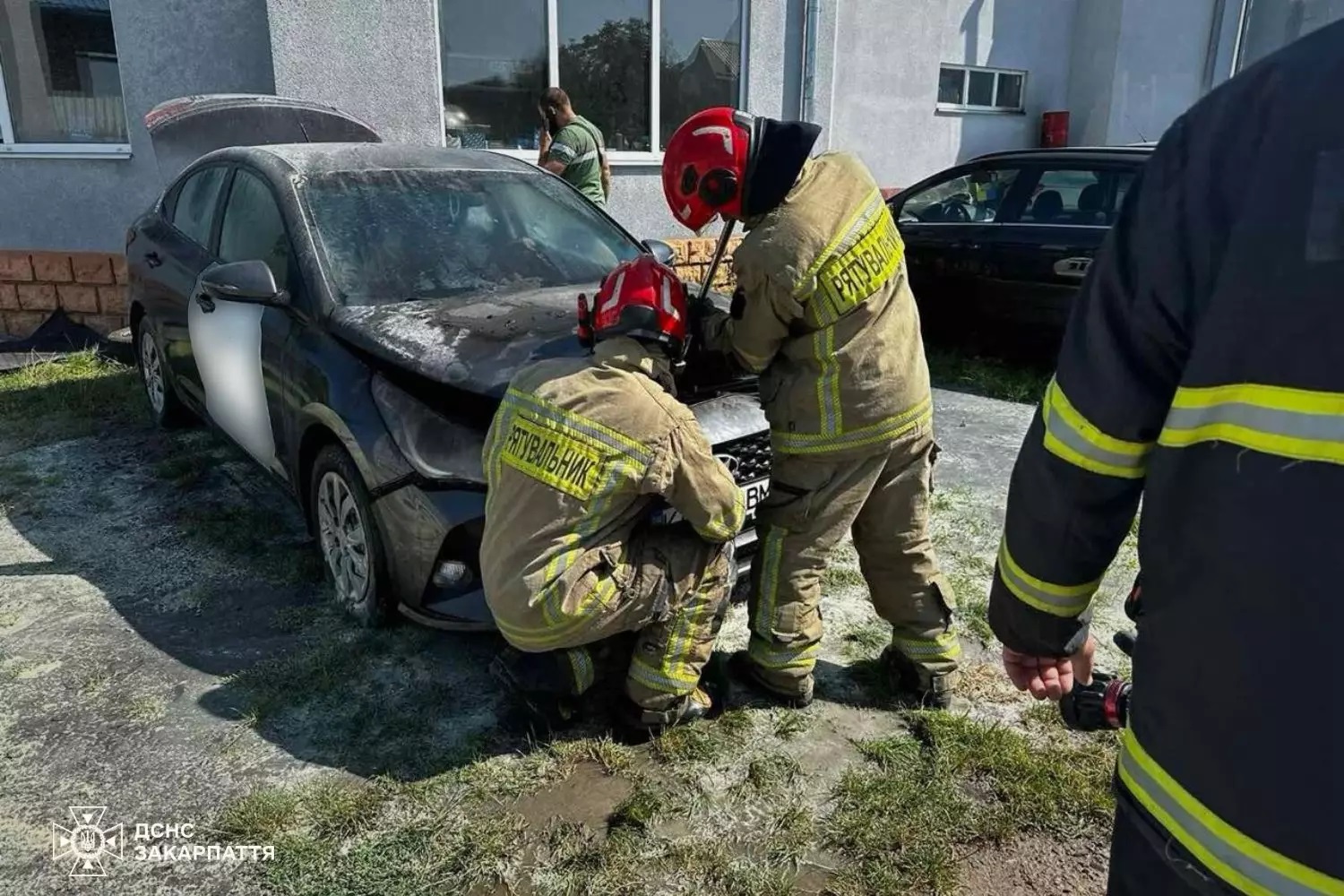 До приїзду вогнеборців 3-ї державної пожежно-рятувальної частини міста Ужгород тимчасовий власник разом із фахівцями намагались загасити вогонь за допомогою вогнегасників, а далі їх справу продовжили бійці ДСНС.