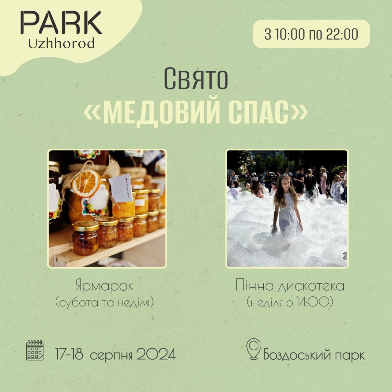 17-18 серпня у Боздоському парку в Ужгороді із 10:00 по 22:00 на містян чекає ярмарок з різноманітними локаціями, де можна буде придбати традиційні смаколики та крафтові напої від місцевих виробників.