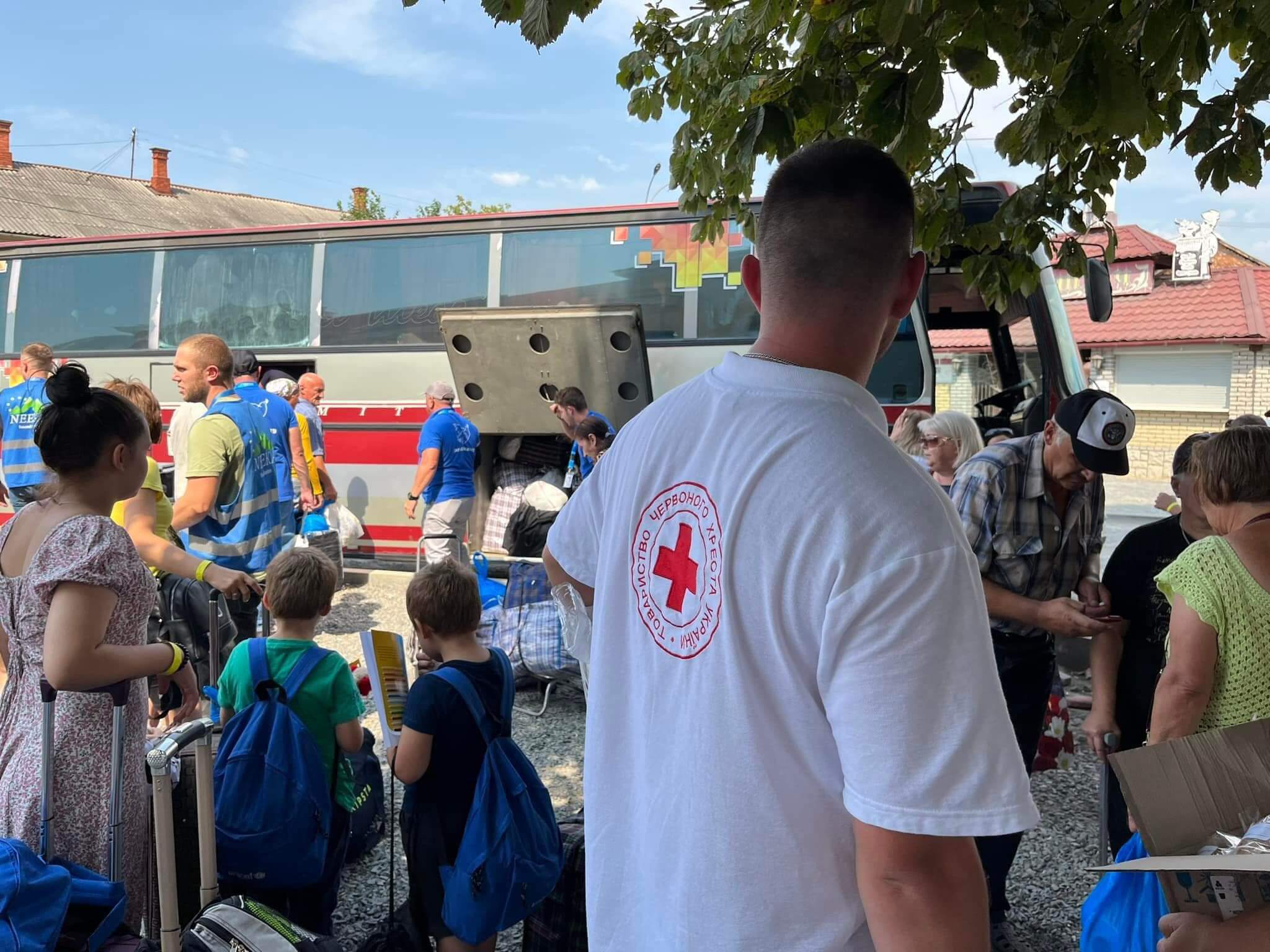 Людей зустріли на залізничному вокзалі психологи та фахівці департаменту соціального захисту населення ОВА, Закарпатського обласного центру соціальних служб, рятувальники, партнери із Гуманітарна місія “Проліска”, Червоний Хрест Закарпаття, NEEKA Ukraine.