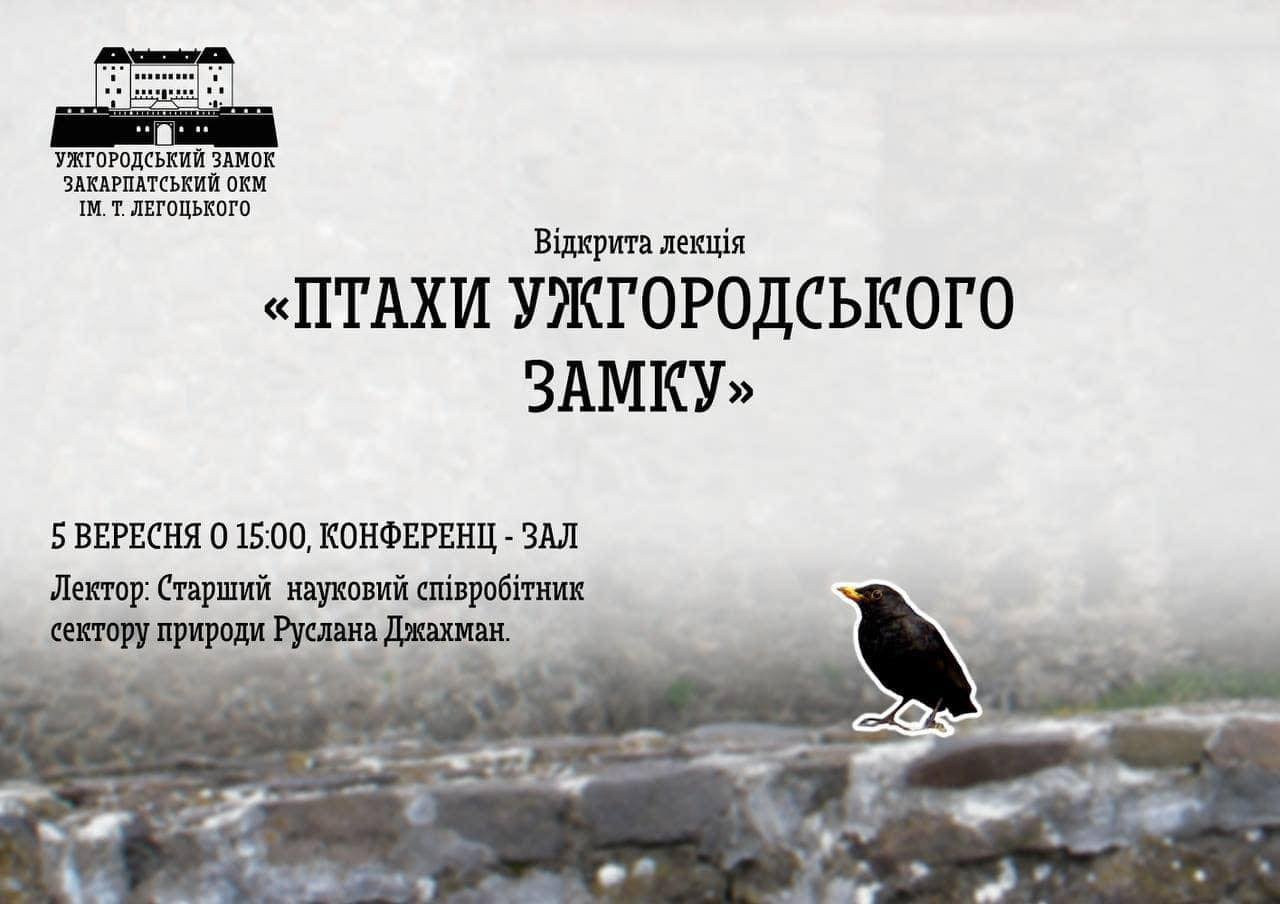 У Закарпатському обласному краєзнавчому музеї імені Т. Легоцького 5 вересня о 15:00 пройде відкрита лекція на тему «Птахи Ужгородського замку».
