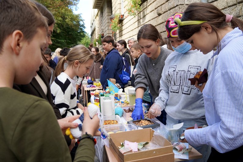 Долучилися усі класи, розповіла директорка закладу Любов Попович. За її словами, ліцеїсти дуже активно волонтерять із початку повномасштабної війни – і це не тільки благодійні ярмарки, які проводять досить часто. Діти виготовляли окопні свічки, збирають дрони, допомагали зі збором коштів на автівки військовим та ще багато іншого.