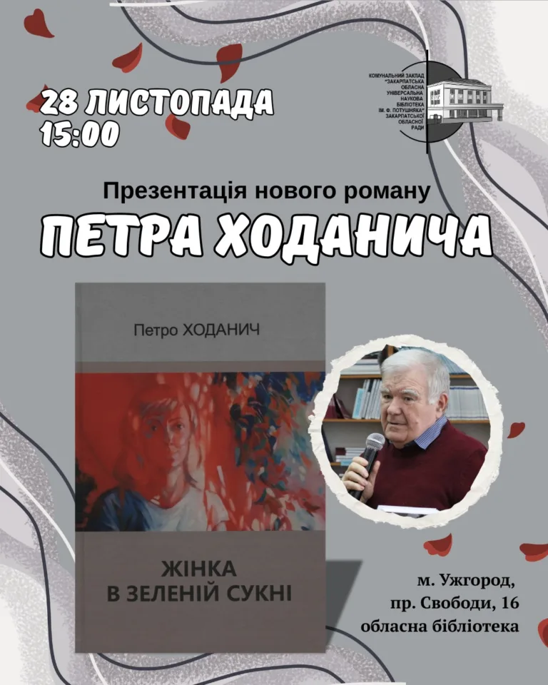У п’ятницю, 28 листопада, о 15:00 у Закарпатській обласній універсальній науковій бібліотеці ім. Ф. Потушняка відбудеться презентація нового роману письменника…