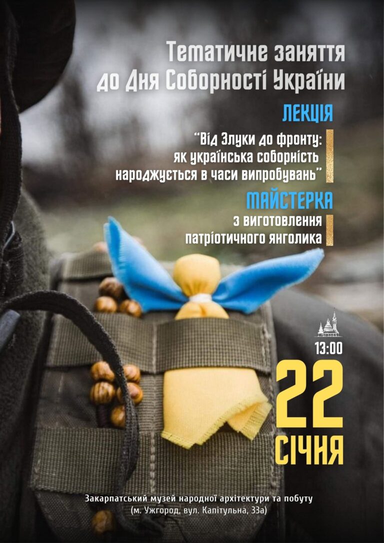 Ужгородський скансен готує особливий захід до Дня Соборності України: лекції, творчість та символічні оберіги Напередодні Дня Соборності України музей просто…