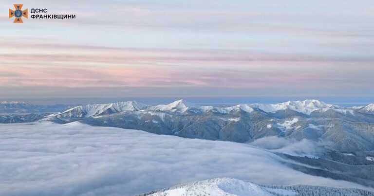Рятувальники поділилися світлиною спокійної атмосфери на горі Піп Іван Чорногірський під час світанку. Зимові Карпати виглядають особливо красиво на цій…
