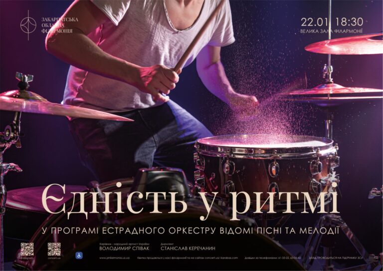 Відбується концерт “Єдність у ритмі” у Закарпатській обласній філармонії Ужгородці та гості міста мають унікальну можливість відвідати концерт живої музики…