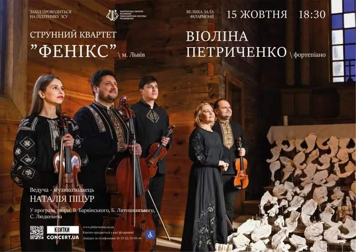 15 жовтня Закарпатська обласна філармонія прийматиме гостей зі Львова — струнний квартет «Фенікс» та піаністку Віоліну Петриченко. У програмі концерту…
