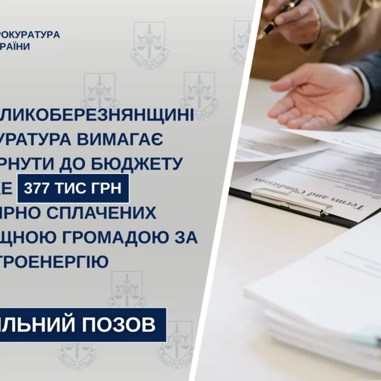 На Закарпатті прокуратура через суд вимагає повернути до бюджету Великоберезнянської селищної громади майже 377 тисяч гривень, які були надмірно сплачені…