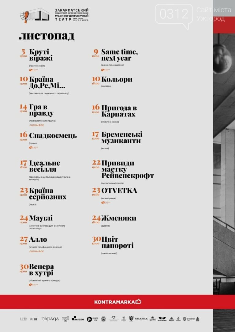 Закарпатський академічний обласний український музично-драматичний театр імені братів Шерегіїв представив репертуар на листопад. ? Квитки – в касі театру або…