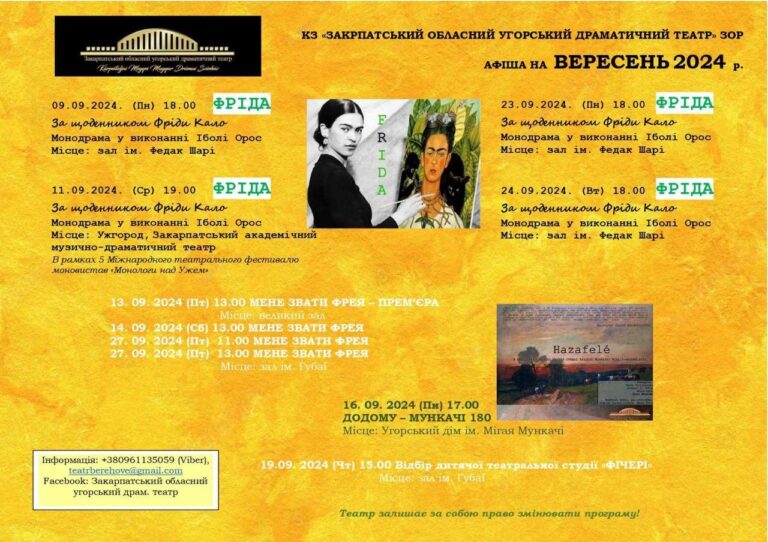 У понеділок, 9 вересня, Закарпатський обласний угорський драматичний театр у місті Берегове урочисто розпочне 31-й театральний сезон. Відкриття сезону відбудеться…