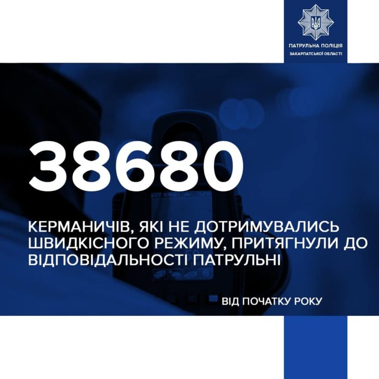 За перевищення швидкості на території області до відповідальності притягнули 38 680 водіїв. Статистику порушень опублікували на сторінці патрульної поліції…