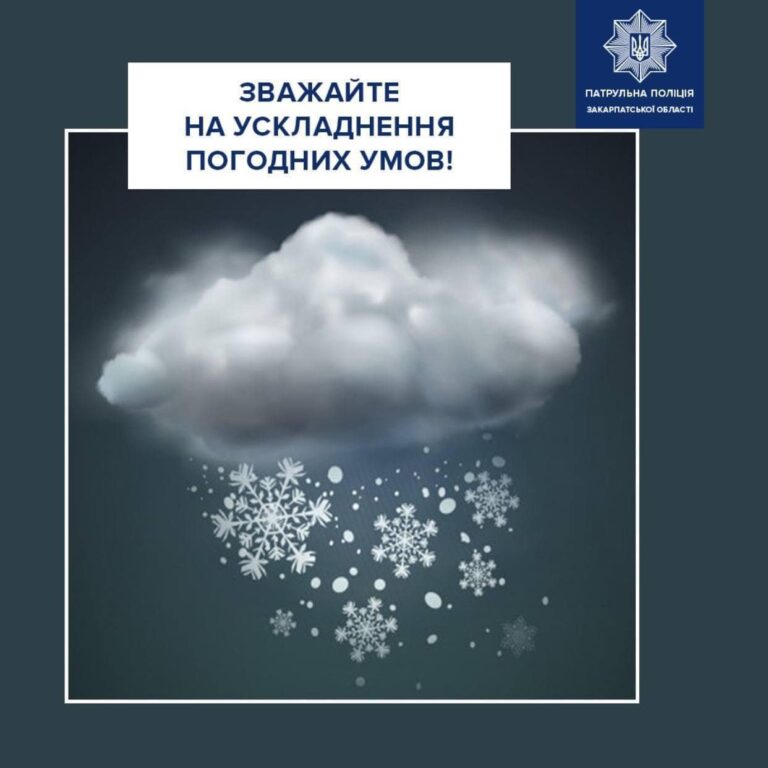 Патрульна поліція Закарпаття повідомила про можливе ускладнення погодних умов у регіоні через очікуваний снігопад. Жителів області закликають враховувати погоду під…