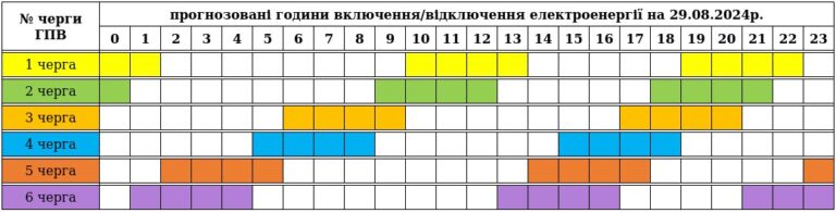 Графіки погодинних відключень електроенергії застосовуватимуть упродовж усієї доби 29 серпня. Про це повідомила пресслужба НЕК Укренерго у своєму Telegram-каналі. У…