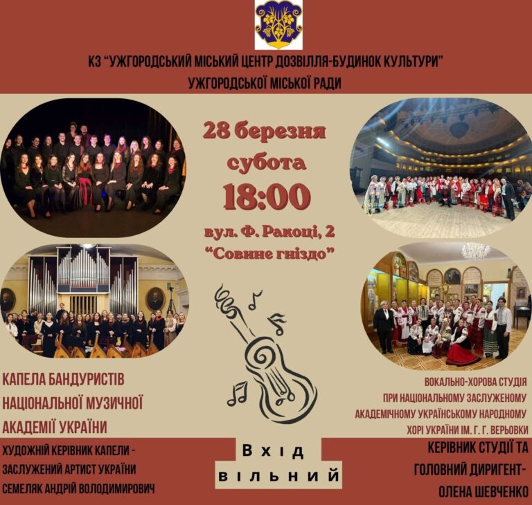 Ужгород Чекає На Безкоштовний Концерт Майстрів Української Музики У Культурно-історичному центрі «Совине гніздо» м. Ужгород відбудеться безкоштовний концерт, на якому…