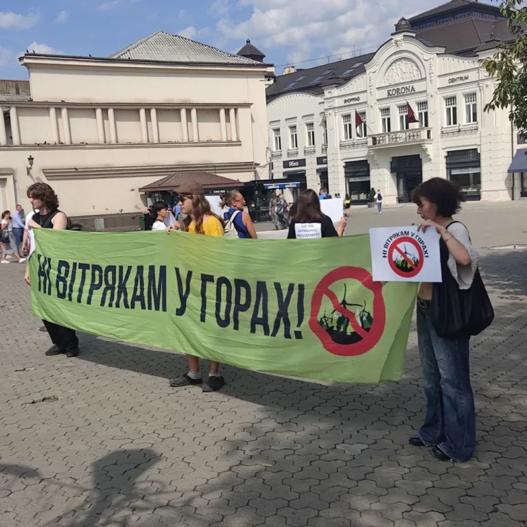 Біля пішохідного мосту на площу Театральну вийшли активісти з плакатами проти забудови високогір’я Карпат вітровими електростанціями. Вийшли на мітинг саме…