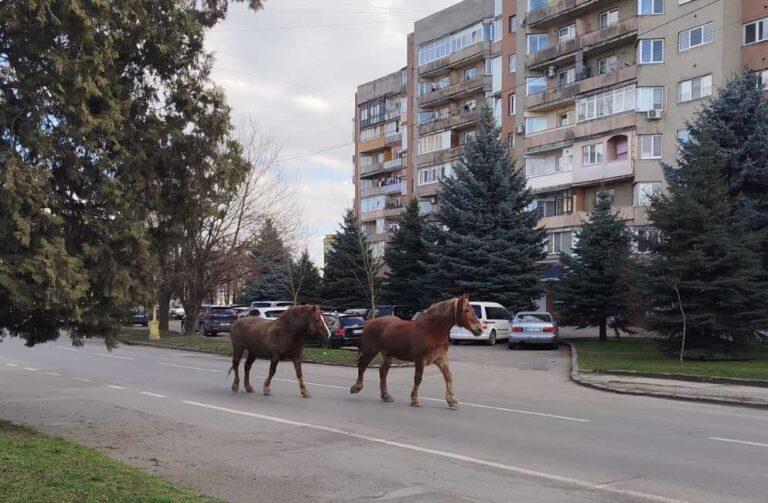 Відео відзнято починаючи з вулиці Івана Чендея (колишня Л.Толстого). Далі коні, рухаючись назустріч автомобілям, завернули на кільце перед транспортним…